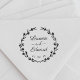 Carimbo de casamento personalizado com caligrafia moderna e coroa floral desenhada à mão. Personalize com os nomes da noiva e do noivo e a data do casamento. Perfeito para casamentos rústicos, country e teatrais.