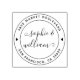 Crie seu endereço de volta redondo de casamento e faça toda a correspondência sem esforço. Basta clicar em "Personalizar esta modelo" e colocar o nome da noiva ou noiva no primeiro e segundo campos, o número da sua casa e rua no terceiro, e a sua cidade, estado e CEP no quarto. Esse design de selo de borracha é simples, mas moderno, com dois círculos com coração no meio. Combinação de fontes elegantes de caligrafia com tipografia sans-serif de eterno. Escolha entre 5 cores diferentes do painel de tinta.