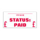 Este design de carimbo contém as mensagens "STATUS: PAID" (STATUS: PAGO), juntamente com um símbolo de libra e uma linha onde uma data de pagamento poderia ser escrita. Ele poderia ser usado para marcar uma fatura ou fatura como tendo sido paga no cheio.