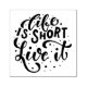 Trecho da tipografia; A vida é curta. Transforme qualquer projeto de artesanato com esses selos personalizados de madeira. Deixe uma impressão personalizada carregando um design, imagem, padrão ou texto em nosso site e faça um carimbo de madeira exclusivo.