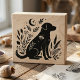 This rubber stamp features a striking black labrador profile adorned with beautiful celestial and botanical folk elements. Perfect for a nature-loving dog owner or as a unique memorial gift, it brings a touch of bohemian magic to your projects. The intricate design combines star and moon details with a warm, personal touch.