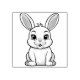 Vector illustration of a smiling white bunny with large, sweet eyes, long, blue ears, and a pink nose, in a cartoon style, on a black background. Suitable as a logo or mascot.