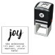 Este selo de feriado moderno apresenta um script de caligrafia de pincel "joy" e suas informações de endereço de retorno. É fácil personalizá-lo com suas próprias informações e selecionar uma cor de tinta. Este selo facilita o endereço dos envelopes de férias e também faz um belo presente ou estoque!