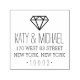 Incorpore as datas, os convites para festas de noivado ou os anúncios com o nosso carimbo de endereço de retorno de diamante moderno, com o seu nome e os detalhes de endereço de retorno numa mistura moderna de estilo escrito à mão e de letra de bloco, seguido de uma ilustração gráfica e simples de diamante.