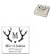Carimbo de casamento personalizado com galhadas rústicas, inicial de monograma e nomes de casais e endereço abaixo. Use para a papelaria do casamento, ou comprar para uma amiga do casamento, ou como um presente recém-casado.