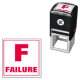 Este carimbo contém a letra "F" e a palavra "FAILURE". Ele poderia ser usado por professores, educadores ou assistentes de ensino ao dar uma nota enquanto marca suas tarefas, testes, projetos, testes, exames, trabalhos e outras obras acadêmicas.