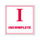 Este carimbo contém a letra "I" e a palavra "INCOMPLETE". Ele poderia ser usado por professores, educadores ou assistentes de ensino ao dar uma nota enquanto marca suas tarefas, testes, projetos, testes, exames, trabalhos e outras obras acadêmicas.