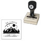 Carimbo elegante de livros de ex-líbris com características de montanha que incluem design paisagístico de montanhas e pinheiros desenhados à mão para amantes de natureza selvagem e fontes clássicas de script. Personalize este belo selo de borracha com o seu nome.