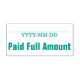 Este design de carimbo simples apresenta as mensagens "Quantia de Cheio Pago" e uma linha onde uma data de pagamento pode ser escrita. Ele poderia ser usado para marcar uma fatura ou fatura como tendo sido paga no cheio.