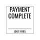 Este design de carimbo simples e básico contém as mensagens "PAYMENT COMPLETE" e uma linha onde uma data de pagamento pode ser escrita. Ele poderia ser usado para marcar uma fatura ou fatura como tendo sido paga no cheio.
