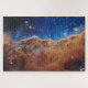 Esta paisagem de "montanhas" e "vales" salpicada com estrelas reluzentes é na verdade a borda de uma região próxima, jovem e formadora de estrelas chamada NGC 3324 na Nebulosa Carina. Captada em luz infravermelha pelo novo telescópio espacial James Webb da NASA, esta imagem revela pela primeira vez áreas anteriormente invisíveis de nascimento estelar. Chamada de Cliff Cósmico, a imagem aparentemente tridimensional de Webb parece montanhas rugosas numa noite iluminada pela lua. Na realidade, é a borda da cavidade gasosa gigante dentro da NGC 3324, e os picos mais altos nesta imagem têm cerca de 7 anos-luz de altura. A caverna foi esculpida da nebulosa pela intensa radiação ultravioleta e ventos estelares de estrelas jovens, extremamente massivas e quentes, localizadas no centro da bolha, acima da área mostrada nessa imagem. A radiação ultravioleta, que soa a bolha das estrelas jovens, está a esculpir a parede da nebulosa, destruindo-a lentamente. Torre de pilares dramáticos acima do brilho da parede de gás, resistindo a essa radiação. O "vapor" que parece subir das "montanhas" celestiais é na verdade gás quente, ionizado e poeira quente que está saindo da nebulosa devido à radiação implacável. Webb revela berçários estelares emergentes e estrelas individuais que estão completamente escondidos em imagens de luz visível. Por causa da sensibilidade de Webb à luz infravermelha, ele pode atravessar poeira cósmica para ver esses objetos. Jatos protoestelares, que emergem claramente nesta imagem, saem de algumas dessas jovens estrelas. As fontes mais jovens aparecem como pontos vermelhos na região escura e poeirenta da nuvem. Os objetos nas fases mais antigas e rápidas de formação de estrelas são difíceis de capturar, mas a extrema sensibilidade, resolução espacial e capacidade de geração de imagens de Webb podem cronicar esses eventos elusivos. Estas observações da NGC 3324 vão trazer luz ao processo de formação de estrelas. O parto estelar se propaga com o tempo, desencadeado pela expansão da cavidade erosiva. À medida que a jante brilhante e ionizada se move para a nebulosa, lentamente empurra para o gás e a poeira. Se a jante encontrar algum material instável, o aumento da pressão provocará o colapso do material e a formação de novas estrelas. Por outro lado, esse tipo de distúrbio também pode impedir a formação de estrelas à medida que o material de fazer-estrela é erodido. Esse é um equilíbrio muito delicado entre a formação de estrelas desencadeadoras e a sua interrupção. Webb abordará algumas questões excelentes e abertas da astrofísica moderna: O que determina o número de estrelas que se formam em determinada região? Por que as estrelas se formam com uma certa massa? Webb também revelará o impacto da formação de estrelas na evolução de gigantescas nuvens de gás e poeira. Embora o efeito das estrelas maciças - com os seus ventos violentos e a sua energia elevada - seja muitas vezes aparente, menos se sabe sobre a influência das mais numerosas estrelas de baixa massa. À medida que se formam, essas estrelas menores criam jatos estreitos e opostos vistos aqui, que podem injetar muita força e energia nas nuvens. Isso reduz a fração do material nebular que semeia novas estrelas. Até agora, os cientistas têm tido muito poucos dados sobre a influência da multidão de estrelas jovens e mais energéticas de baixa massa. Com Webb, eles poderão obter um censo de cheio de seu número e impacto em toda a nebulosa. Localizada a cerca de 7.600 anos-luz, a NGC 3324 foi imageada pela câmera Near-Infrared (NIRCam) do Webb e pelo Instrumento Infravermelho de Médio (MIRI). O NIRCam - com a sua resolução nítida e sensibilidade inigualável - revela centenas de estrelas previamente ocultas, e até mesmo numerosas galáxias de fundo. Segundo MIRI, as estrelas jovens e os seus discos empoeirados, que formam o planeta brilham intensamente no infravermelho do médio, que aparecem cor-de-rosa e vermelha. MIRI revela estruturas que estão embutidas na poeira e descobre as fontes estelares de jatos e saídas maciças. Com o MIRI, a poeira quente, os hidrocarbonetos e outros compostos químicos na superfície das serras brilham, dando a aparência de rochas irregulares. NGC 3324 foi catalogada pela primeira vez por James Dunlop em 1826. Visível no hemisfério Sul, fica no canto noroeste da Nebulosa Carina (NGC 3372), que reside na constelação Carina. A Nebulosa Carina abriga a Nebulosa Keyhole e a estrela super-gigante ativa e instável chamada Eta Carinae.