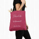 Elegante Carmine Magenta Bridesmaid Tote Bag, personalize o nome da dama de honra e a data do casamento, usando a modelo de personalização online antes de fazer o pedido. O texto copia automaticamente para o outro lado do saco de totas para que ambos os lados exibam texto idêntico. O modelo de personalização também pode ser usado para personalizar o design para outros títulos de convidados de casamento, como "Madrinha de casamento" ou "Mãe do Chão", mudando o texto relevante de acordo com ele antes de adicionar ao carrinho. Esta bela sacola de tote mostra na moda branco em uma bela sombra de magenta carmim.