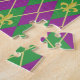 Um padrão harlequin de verde e roxo se transforma em um argilo lúdico com uma camada de contornos de diamante de ouro e flur de lis, criando um padrão divertido e colorido perfeito para qualquer nova orleans influenciou a celebração do Mardi Gras.
