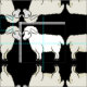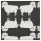 Características deste design do tecido do animal um teste padrão abstrato de repetição de carneiros brancos e amarelos pálido de cabelo encaracolado doces com pés e olhos azuis pretos. Personalize facilmente o fundo preto à cor de sua escolha para serir seu projeto especial.
