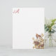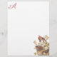 Mande desejos calorosos com esta família de aves que amamenta, amontoadas no fundo direito deste papel monograma. A família Carolina Pigeon ou Tartle Dove (Mourning Dove) de Audubon nidificando numa árvore com delicadas flores brancas. Reprodução artística de um original de John James Audubon. A cor do monograma é amostrada a partir do centro rosado das flores para se coordenar perfeitamente com o trabalho de arte.
