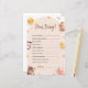 Este adorável chá de fraldas Game Dear Baby Wish apresenta um tema fazenda charmoso com ilustrações bonitinhas de uma vaca, coelho, pintinho, cavalo e porco, cercado por flores alegres e um sol sorridente. As cores pastel suaves e a design branca criam uma atmosfera quente e convidativa. Visite o nosso compro para ver toda a nossa coleção de animais de Fazenda castanha-branca.