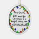 Ornamento engraçado da motocicleta para o Xmas. Caro Papai noel, tudo que eu quero para o Natal é uma motocicleta brilhante, brilhante, nova! Design divertido do humor, cercado por luzes de Natal multi-coloridas.