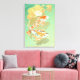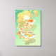 Canvas com dois coi de carpa na ilustração do lago de água. Cor verde, amarela, laranja e dourada.
