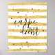 Moderno e na moda, este Carpe, o Poster de padrão Dourado de Stripe do Diem é a peça perfeita para sua casa ou escritório para encorajá-lo e motivá-lo a atacar todos os dias de frente. Aproveite o dia com tudo o que tem ou vá para casa.