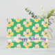 Delicar as flores amarelas sobre um fundo verde com uma faixa que diz: "Dia de as mães feliz". Este design de placa plana é verde nas costas, com uma área para você adicionar sua mensagem.