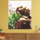 buddha feliz sorri enquanto carrega um saco de grãos, segurando-se nesta miçanga. Feche a foto de uma estátua de Miniviço. | fotografia(arte)grafia: Webgrrl.biz
