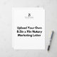 Traga sua carta notária pré-projetada para marketing e faça o upload do arquivo para este modelo de vazio para cartas de marketing profissionais. Adicione-os aos seus cabazes de tratamento de marketing ou numa campanha de correio aos escritórios de advocacia e agências imobiliárias, hospitais, casas funerárias e muitas mais empresas na sua área!