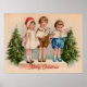 A imagem original é dos anos 1800, mostrando três crianças encantadoras cantando canções de Natal como se em um show de Natal na escola. Cria um poster de natais vintages de excelente.