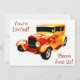 Um belo automóvel vintage com um clássico trabalho de tinta personalizada de cor laranja e chamas vermelhas faz com que este convite totalmente personalizável se destaque. Adicione os detalhes de sua festa e os detalhes para criar um convite exclusivo e digno para qualquer celebração ou evento, incluindo aniversários, aposentadorias, shows de carros, promoções etc.