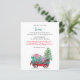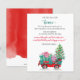 Árvore de natal cômoda orçamentária em um carrinho vermelho Nós movemos o cartão postal de lançamento de feriado com Carro vintage vermelho e árvore de Natal decorada e presentes de Natal