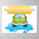 Este design é um carro engraçado numa lavagem de carro. O carro está num estilo de desenho animado com olhos e um sorriso. Está gostando da lavagem do carro. Este carro engraçado numa design de lavagem de carros parece excelente nesta Poster