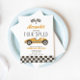 Feito para a corrida amarela rápida Carro 4º Aniversário Convite com carro azul de corrida.