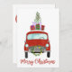 Natal... Com um piscar de olhos passou outro ano e é Natal de novo. Um carro retrógrado vermelho com presentes coloridos embrulhados no seu telhado fará um cartão de Natal perfeito para todos os seus amigos e familiares