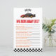 Este é um carro de corrida vermelho que conhece o melhor jogo de Chá de fraldas das Mamães. *Quem Conhece Mais Mamães? - Preencha sua própria folha de respostas e faça seus hóspedes adivinharem as respostas!