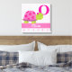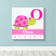 Turtle Baby Nursery Canvas Imprimir para qualquer sala de meninas. Tartaruga branca com flores cor-de-rosa e padrão zigue-zague-chevron. Personalizado com nome e Inicial.