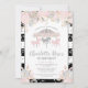 O convite de aniversário floral de carrossel floral, cor-de-rosa e prata, perfeito para o seu primeiro aniversário