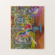 Uma bela fotografia de cavalos carrossel coloridos impressos em um quebra-cabeça.