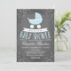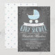 Este convite para Chás de fraldas elegante e chic apresenta uma carruagem de bebê azul em um fundo de quadro. Opte por uma forma recortada ou um papel texturizado para convites extras memoráveis. Vem em várias cores.