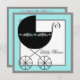 Cinzas de cor azul e prata elegantes e convites para chuveiros de bebês pretos. Carruagem preta elegante com bebê design azul de prata e turquesa ou convite para chá de fraldas neutro de gênero. Adicione os seus detalhes à frente e/ou atrás, simplesmente escolhendo o botão "Personalizar!" para começar a adicionar os detalhes do evento, estilo da fonte, tamanho e cor da fonte e texto. Observe que todos os designs de convite que você encontrará no Zazzle são gráficos impressos sem joias reais, arcos, levantados, gravados em relevo ou peças ou peças adicionadas.
