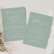 Esta carta de boas-vindas à caligrafia branca verde é perfeita para um casamento rústico. O design simples e na moda apresenta a tipografia de script clássico e rico em um fundo verde. Personalize a frente com uma mensagem de boas-vindas para seus convidados e seus nomes. Personalize as costas com a programação de eventos e outras informações úteis.
