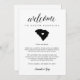 Compartilhe uma mensagem de boas-vindas para seus convidados de casamento da Carolina do Sul, bem como um itinerário ou agenda dos eventos do fim de semana. Frente mostra sua mensagem bem-vinda com um mapa da silhueta do estado da Carolina do Sul com um dentro de coração. Personalize o reverso com o dia do casamento ou o itinerário do fim de semana do casamento. Perfeito por incluir nas bolsas de boas-vindas do hotel ou entregar aos quartos dos seus convidados.