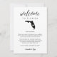 Compartilhe uma mensagem de boas-vindas para seus convidados de casamento na Flórida, bem como um itinerário ou agenda dos eventos do fim de semana. Front mostra sua mensagem de boas-vindas com um mapa da silhueta do estado da Flórida com um dentro de coração. Personalize o reverso com o dia do casamento ou o itinerário do fim de semana do casamento. Perfeito por incluir nas bolsas de boas-vindas do hotel ou entregar aos quartos dos seus convidados.