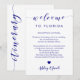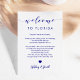 Este cartão moderno e elegante é o símbolo perfeito para as suas bolsas de boas-vindas do hotel. Digite os eventos principais e uma nota personalizada para ajudar seus convidados a navegar no fim de semana.