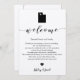 Este cartão moderno e elegante é o símbolo perfeito para as suas bolsas de boas-vindas do hotel. Digite os eventos principais e uma nota personalizada para ajudar seus convidados a navegar no fim de semana.