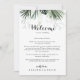 Esta carta de boas-vindas a um casamento branco e verde tropical é perfeita para um casamento de destino. A design apresenta palmeiras verdes folhas buquês com flores brancas adoráveis. Personalize a frente com uma mensagem de boas-vindas para seus convidados e seus nomes. Personalize as costas com a programação de eventos e outras informações úteis.