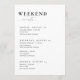 Bem-vindos aos seus hóspedes em estilo com este cartão de fim de semana minimalista do casamento. Esta nota de mala de boas-vindas do casamento permite-lhe criar facilmente um itinerário de casamento personalizado para o seu fim de semana especial, garantindo que os seus convidados tenham todas as informações de que necessitam. A design mínima e elegante é perfeita para qualquer estilo de casamento e a adição perfeita à sua bolsa de boas-vindas de casamento para quando os seus convidados chegarem para verificar no seu quarto!