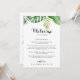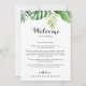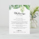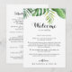 Esta carta de boas-vindas a um casamento verde tropical é perfeita para um casamento simples. A design apresenta palma verde de cor d'água pintada à mão e folhas de bananeira bem organizadas em belos buquês. Personalize a frente com uma mensagem de boas-vindas para seus convidados e seus nomes. Personalize as costas com a programação de eventos e outras informações úteis.