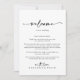 Esta carta elegante de boas-vindas é perfeita para um casamento rústico. O design simples e elegante apresenta a tipografia de scripts clássicos e ricos em preto e branco. Personalize a frente com uma mensagem de boas-vindas para seus convidados e seus nomes. Personalize as costas com a programação de eventos e outras informações úteis.