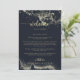 Esta carta de boas-vindas do casamento com ouro de aquarela é perfeita para um casamento rústico. O design apresenta uma abertura dourada pintada manualmente em um fundo azul escuro. Personalize a frente com uma mensagem de boas-vindas para seus convidados e seus nomes. Personalize as costas com a programação de eventos e outras informações úteis.