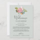 Estas cartas de boas-vindas para o casamento floral pintadas e os cartões itinerários são perfeitos para um casamento moderno. A elegante e romântica design apresenta lindas flores acrílicas pintadas em cor-de-rosa e cinzas, com pop de azul e laranja coloridos. A frente da carta apresenta uma carta de boas-vindas e a parte de trás da carta apresenta o itinerário do casamento. Estas notas são perfeitas para casamentos de destino e bolsas de boas-vindas de hóspedes.
