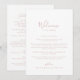 Esta simples carta de boas-vindas minimalista de ouro rosa é perfeita para um casamento moderno. O design simples e elegante apresenta a tipografia de script clássico e de rico em rosa-ouro. Personalize a frente com uma mensagem de boas-vindas para seus convidados e seus nomes. Personalize as costas com a programação de eventos e outras informações úteis.